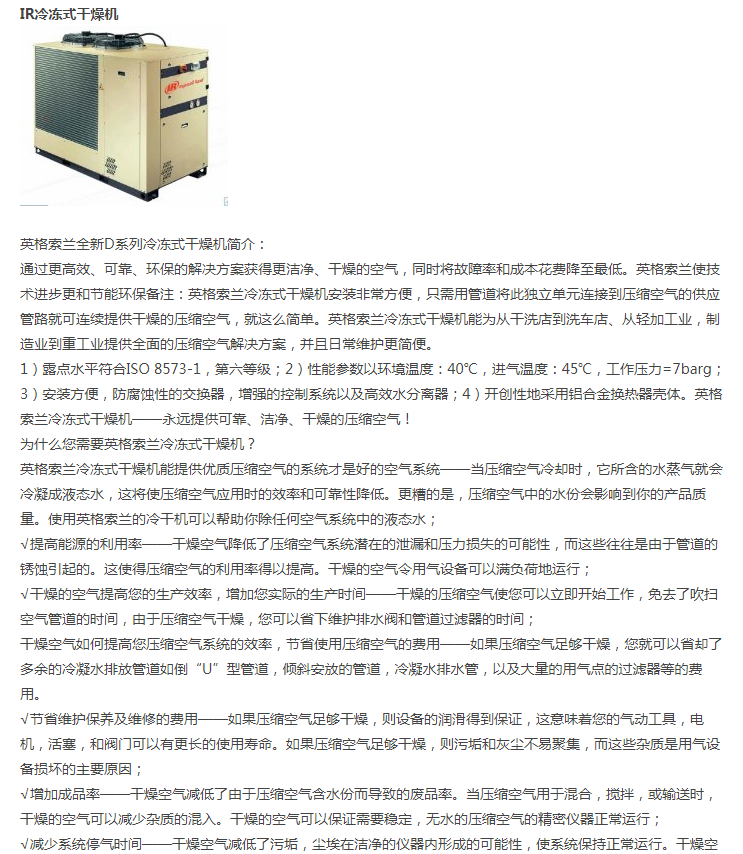 濟(jì)南銳博特機(jī)械設(shè)備有限公司是英格索蘭空氣壓縮機(jī)的授權(quán)代理商,代理銷售美國(guó)英格索蘭全系列的空壓機(jī)及后續(xù)處理設(shè)備。公司自成立以來(lái),經(jīng)過公司全體同仁不斷努力,開拓創(chuàng)新,以優(yōu)良的技術(shù)、完善的售后服務(wù),使得公司贏得了一個(gè)又一個(gè)的誠(chéng)心客戶。我公司擁有多名專業(yè)的銷售及售后服務(wù)人員,為客戶提供空壓系統(tǒng)的售前、售中及售后的全方位優(yōu)質(zhì)服務(wù)。另公司有多名具有英格索蘭壓縮機(jī)授權(quán)服務(wù)證書的服務(wù)工程師,能維修和保養(yǎng)國(guó)內(nèi)外各種品牌空壓機(jī),公司各種國(guó)內(nèi)外品牌空壓機(jī)配件庫(kù)存齊全。